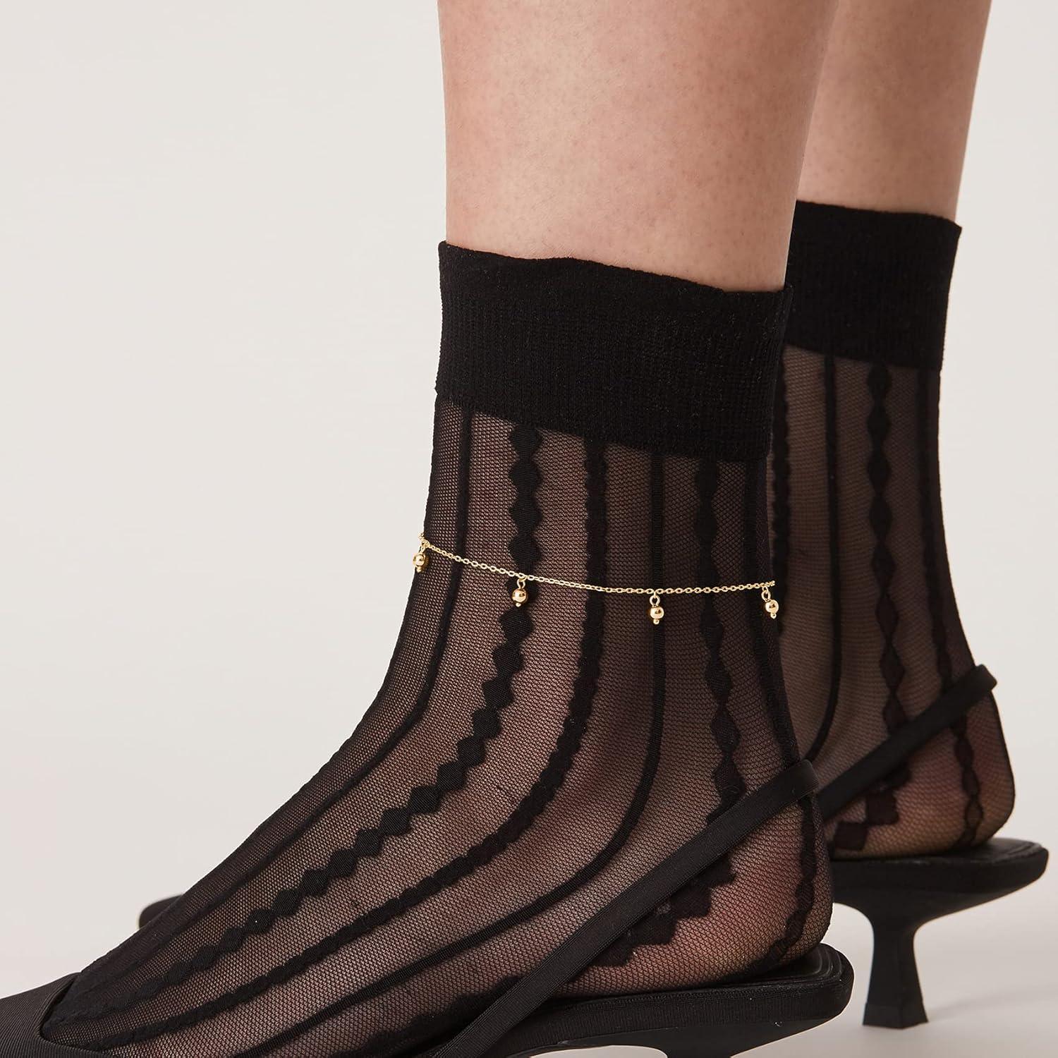 PAVOI 14K Gold Plated Anklet for Women - Trendy Link Chain Ankle Bracelet Summer Jewelry - Boho Dainty Anklets with Cubic Zirconia, Beaded, Evil Eye, Star, Station, Pearls Adjustable Gold Jewelry(Dot)