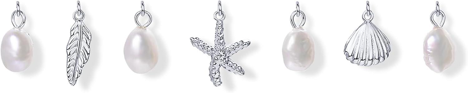 PAVOI 14K Gold Plated Beach Charm Necklace for Women - Dainty Paperclip Chain Trendy Beachy Multi Charm Necklace - Gold Ocean Summer Jewelry with Freshwater Pearl, Sea Shell, Starfish(White Gold)