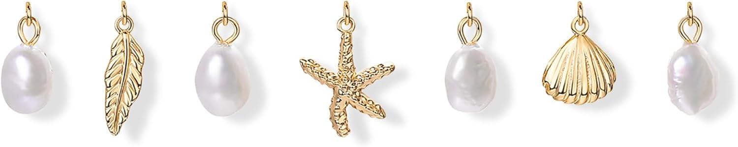 Embrace effortless seaside elegance with the PAVOI 14K Gold Plated Beach Charm Necklace for Women, a dainty design that captures the beauty of the ocean in a refined, wearable way. This gold charm necklace is crafted with a lightweight paperclip chain measuring 16 inches with a 2-inch extender, perfectly balanced with subtle gold necklace charms for women. Each detail tells its own story: a polished freshwater pearl measuring 5MM x 7MM, a petite seashell pendant at 8.6MM x 9MM, a delicate starfish at 11MM x 9.5MM, and a graceful feather pendant at 12MM x 5MM. This womens charm necklace blends minimalism with coastal inspiration, making it an everyday favorite that feels both meaningful and stylish. The design shines as a standalone piece but also layers beautifully with other charm necklaces for women trendy or classic chains for a more curated look. Whether you’re drawn to a sea shell charm necklace, a beachy charm necklace gold, or simply a cute charm necklace that brings sunshine to your day, this design is made to elevate your style with a subtle nod to summer. With its slim, refined silhouette, this charmed necklace for women is perfect for those who love delicate jewelry but still want a touch of personality. The versatile size of the charms makes it easy to wear from morning to night, on vacation or in the city, adding that breezy touch of ocean-inspired glamour.