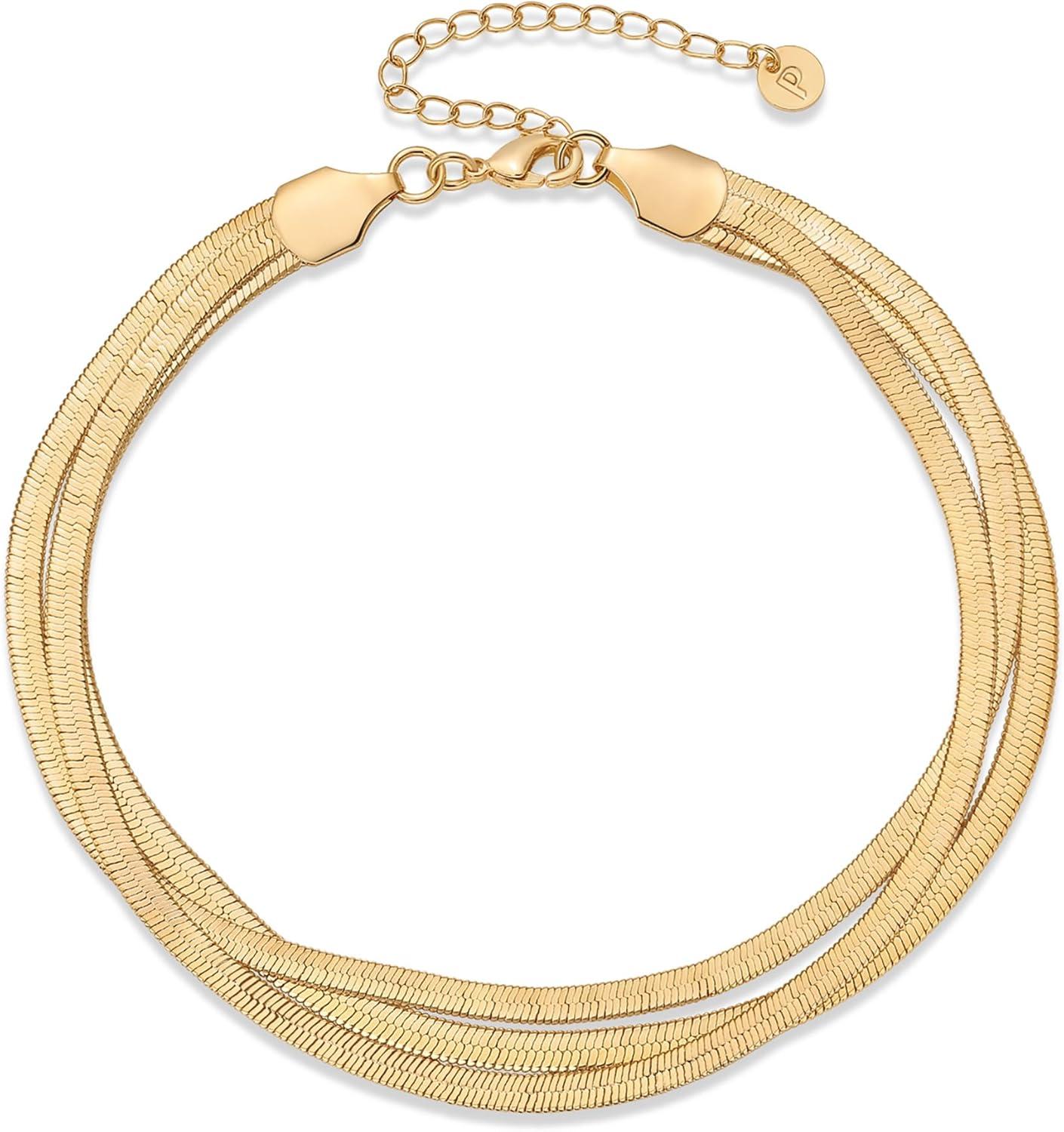 imagePAVOI 14K Gold Plated Chain Anklets for Women  Minimalist Link Chain Ankle Bracelet  Dainty Gold Anklets for Women  Trendy Summer Beach Jewelry Gifts  Snake Figaro Mariner Paperclip BeadedTriple Snake