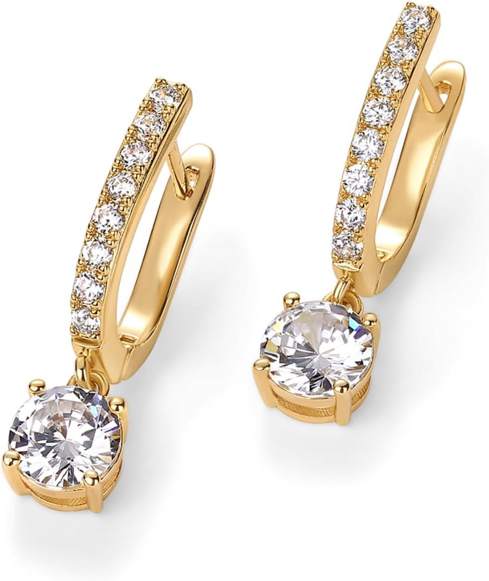 PAVOI 14K Gold Plated Dangle Hoop Earrings for Women - Bridal Small Dangle Gold Earrings with 925 Sterling Silver Posts - Cubic Zirconia Huggie Drop Trendy Fashion Jewelry(Yellow Gold)