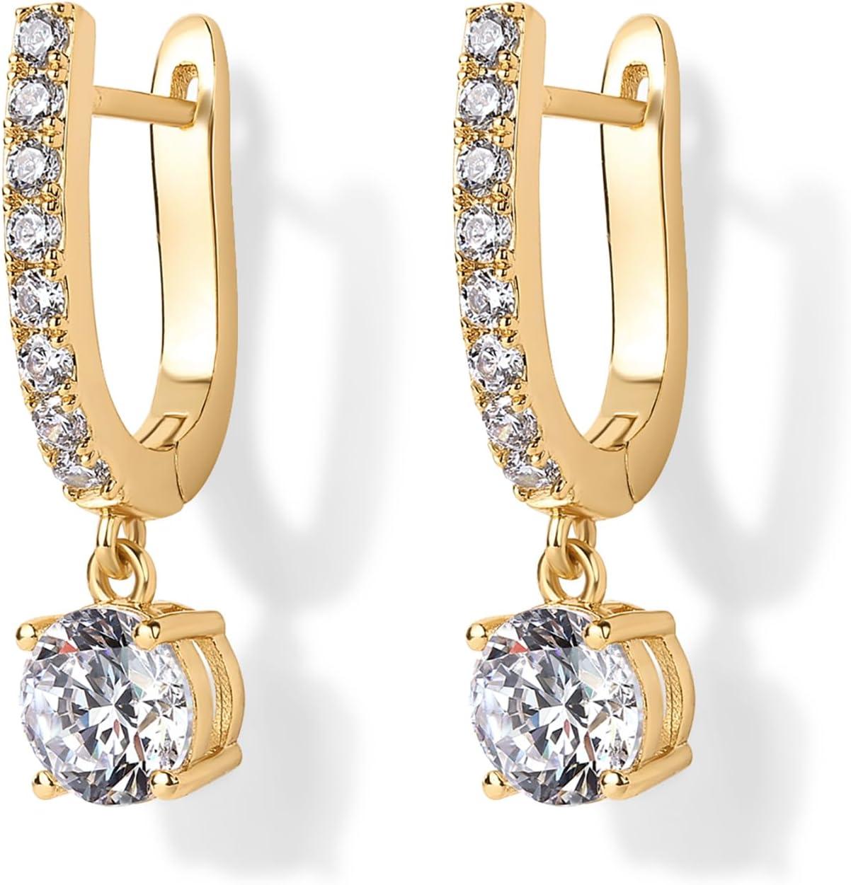 imagePAVOI 14K Gold Plated Dangle Hoop Earrings for Women  Bridal Small Dangle Gold Earrings with 925 Sterling Silver Posts  Cubic Zirconia Huggie Drop Trendy Fashion JewelryWhite Gold