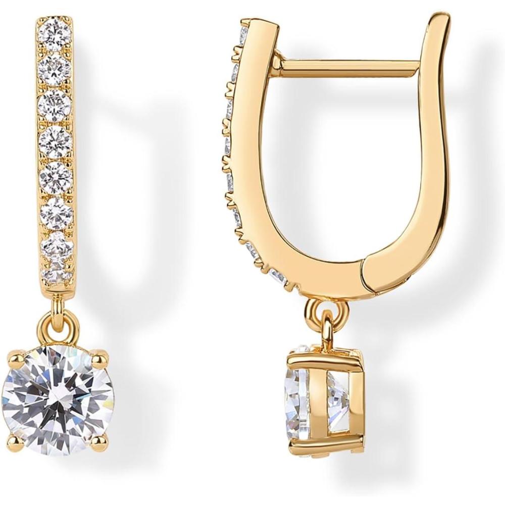 PAVOI 14K Gold Plated Dangle Hoop Earrings for Women – Bridal Small Dangle Gold Earrings with 925 Sterling Silver Posts – Cubic Zirconia Huggie Drop Trendy Fashion Jewelry(Yellow Gold)