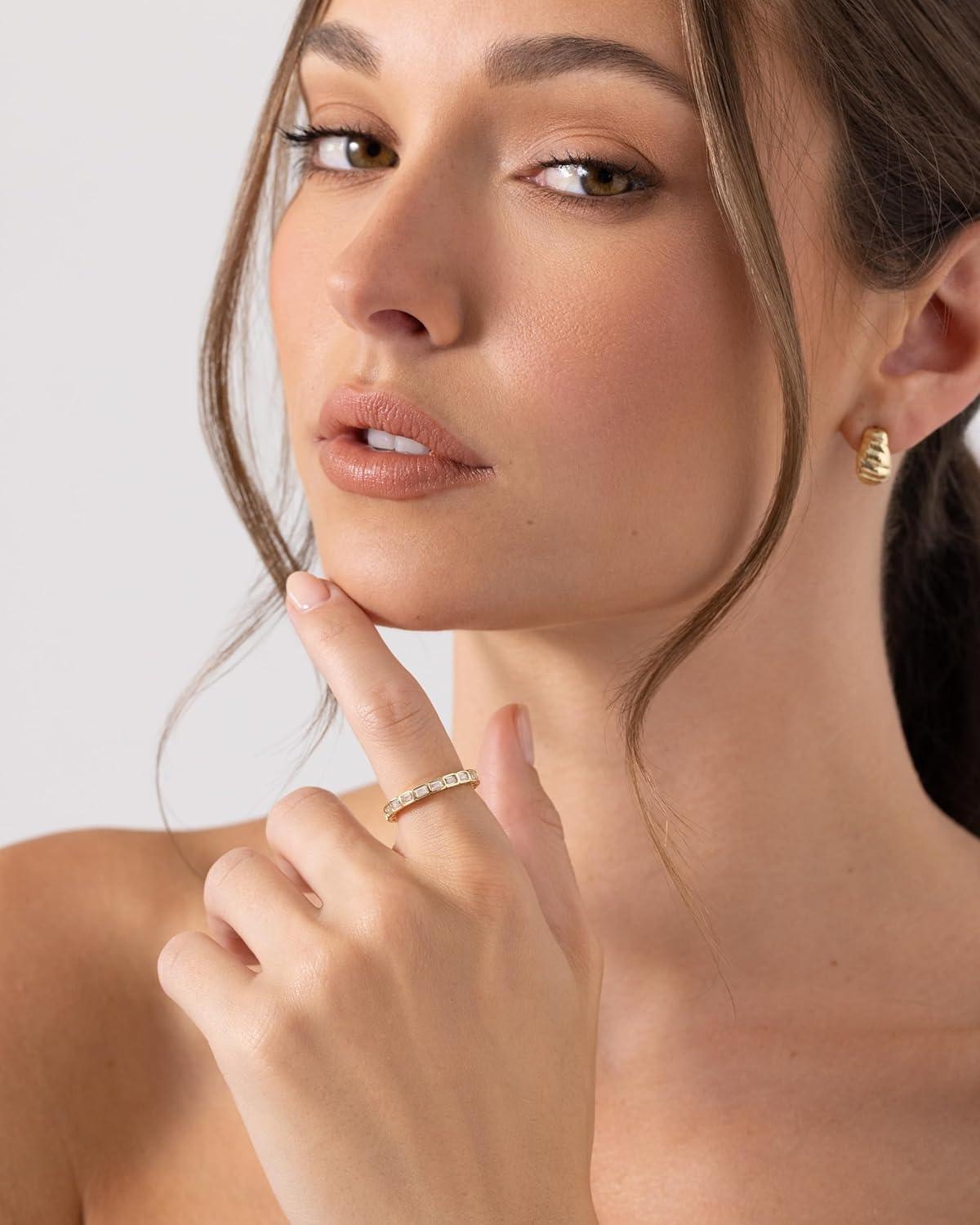 Elevate your style with timeless brilliance in our PAVOI Emerald Cut Cubic Zirconia Ring for Women, a modern expression of elegance designed for everyday luxury. This emerald cut gold ring features a continuous line of meticulously faceted stones that sparkle like fine diamonds, giving you the perfect balance of sophistication and statement shine. Crafted with precision, this emerald cut band captures the clean geometry and mirror-like depth that makes emerald cut rings for women a lasting favorite for brides and fashion lovers alike. Whether worn solo or stacked, this CZ eternity band pairs beautifully with any engagement ring or wedding band. The continuous sparkle makes it a meaningful eternity wedding band, symbolizing everlasting love and commitment. Whether you’re shopping for a wedding, anniversary, or promise ring, this stunning infinity band rings for women delivers the look of lasting brilliance with the feel of effortless elegance. Celebrate love, style, and confidence with PAVOI, jewelry made to shine every day.