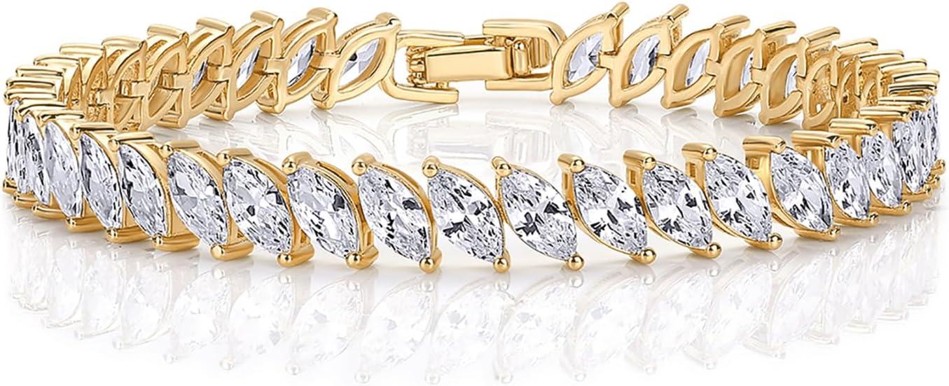 Elevate your bridal collection with the PAVOI bracelet, featuring a sleek 7-inch length and 6.8MM width with white marquise stones sized 3.5MM by 7MM. This bridal tennis bracelet from PAVOI jewelry adds just the right sparkle for special occasions and everyday wear. Crafted with durable brass and radiant 14K gold plating, the bridal bracelet is hypoallergenic and perfect for sensitive skin. Among the finest bridal tennis bracelets for women, it offers lasting shine without irritation. Celebrate life’s moments with this timeless PAVOI tennis bracelet, a thoughtful gift in wedding jewelry. At PAVOI, we make quality, sustainable jewelry for everyday style.
