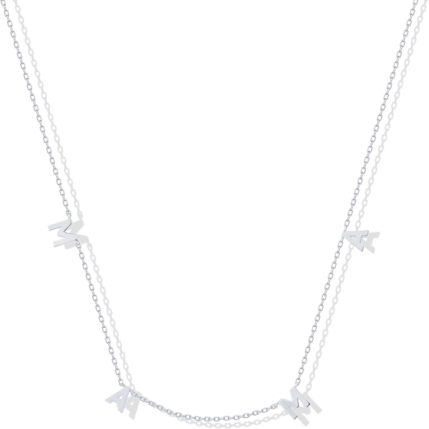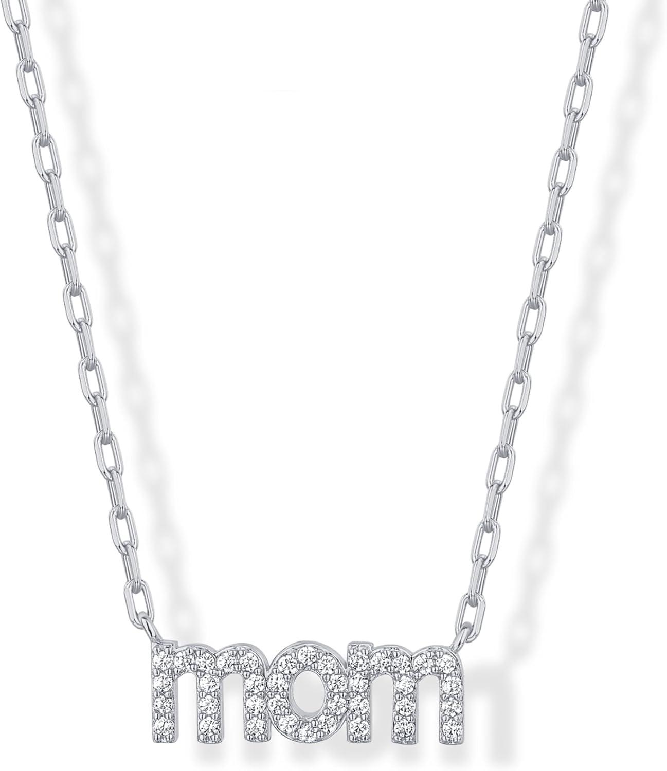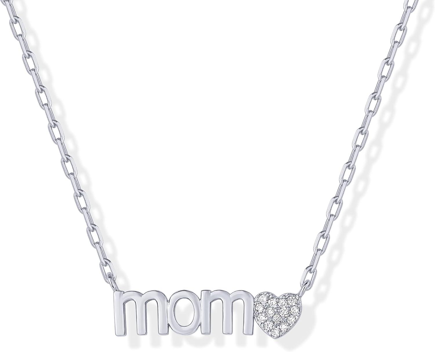 PAVOI 14K Gold Plated Mom Necklace for Women - Cubic Zirconia Mama Necklace Gold Jewelry Gifts for Mothers Day - Dainty Pendant New Mom Jewelry(White Gold)