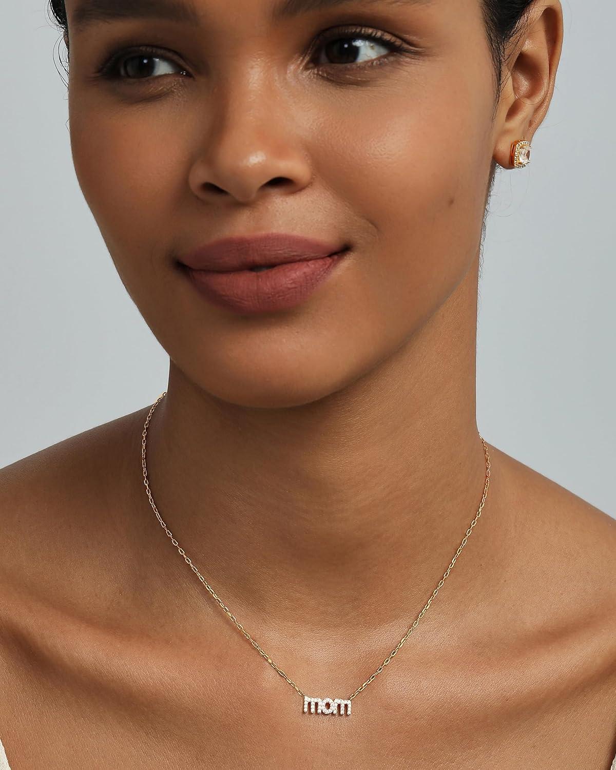 PAVOI 14K Gold Plated Mom Necklace for Women – Cubic Zirconia Mama Necklace Gold Jewelry Gifts for Mothers Day – Dainty Pendant New Mom Jewelry(Yellow Gold)