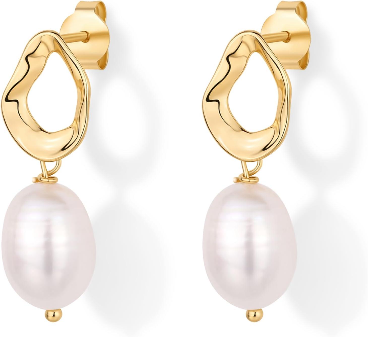 imagePAVOI 14K Gold Plated Pearl Earrings for Women  Pearl Statement Drop Bridal Earrings  Sterling Silver Posts Dangle Studs Gold Wedding JewelryWhite Gold
