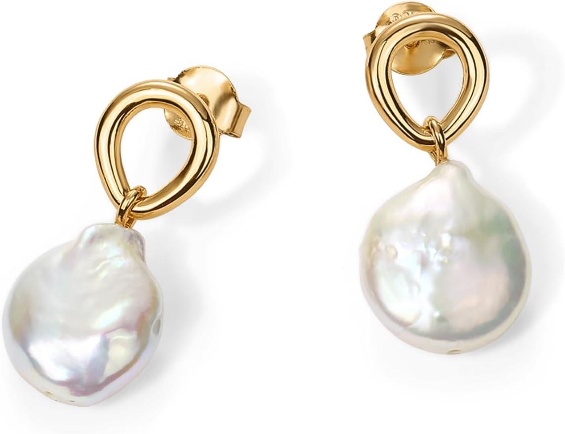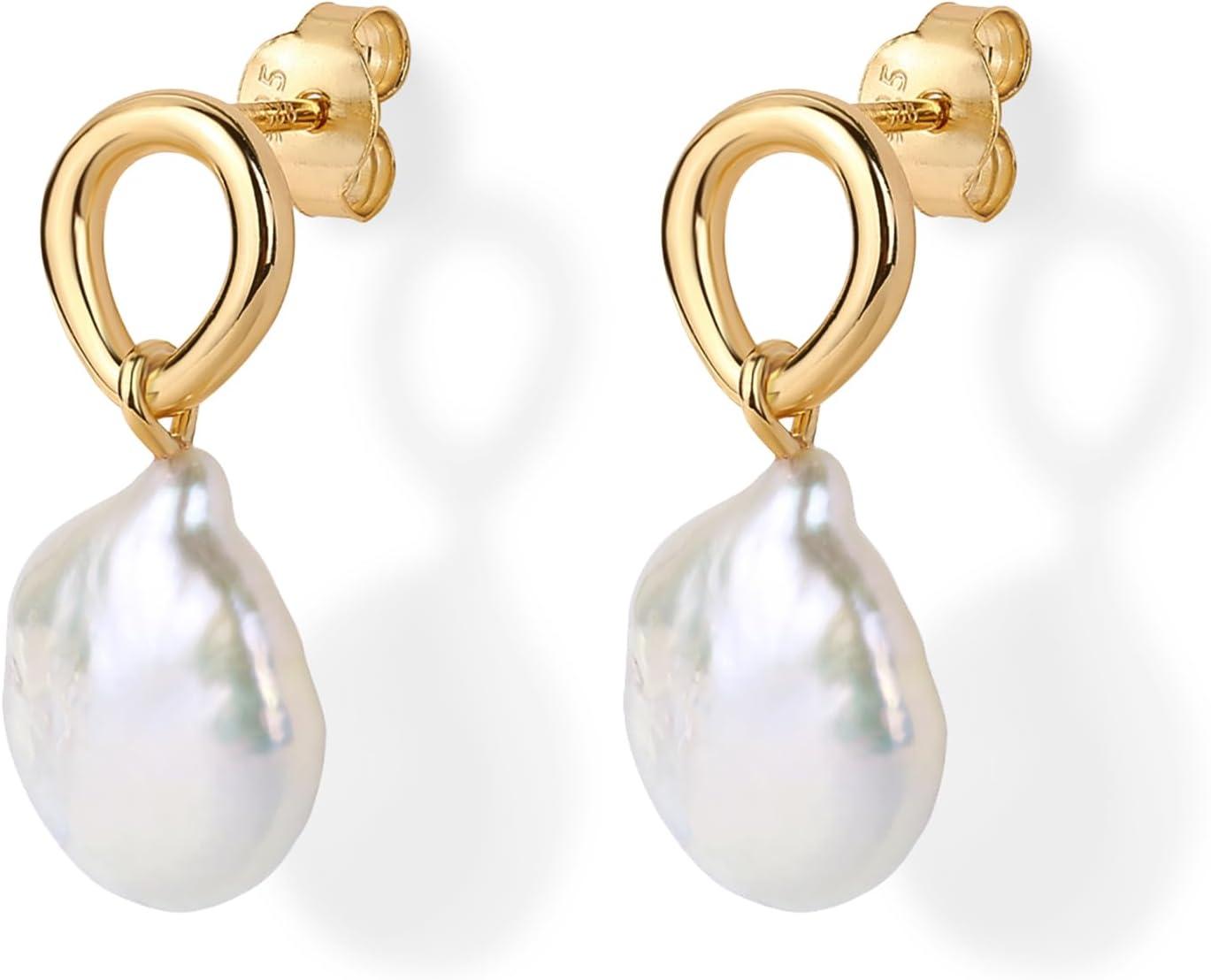 PAVOI 14K Gold Plated Pearl Earrings for Women – Pearl Statement Drop Bridal Earrings – Sterling Silver Posts Dangle Studs Gold Wedding Jewelry(White Gold)