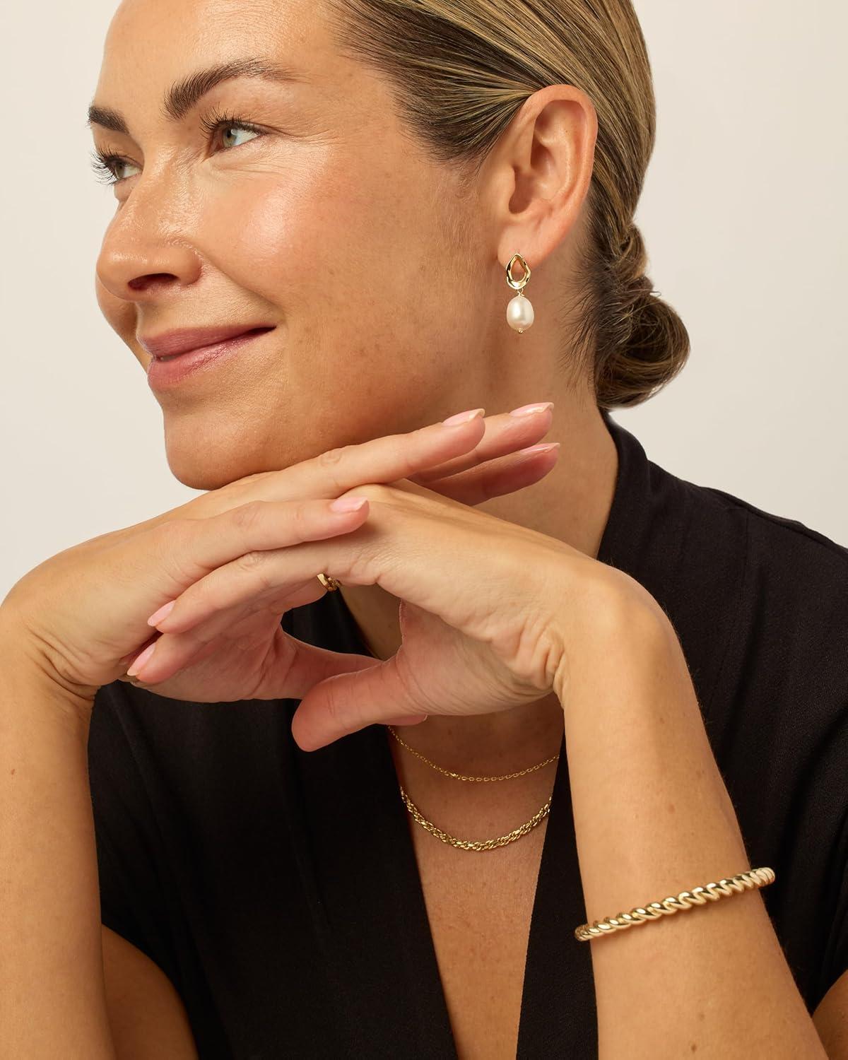 PAVOI 14K Gold Plated Pearl Earrings for Women - Pearl Statement Drop Bridal Earrings - Sterling Silver Posts Dangle Studs Gold Wedding Jewelry(Yellow Gold)