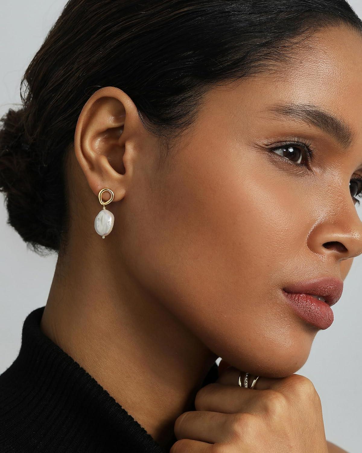Elevate your special moments with these stunning 14K gold plated organic pearl earrings that perfectly blend elegance with timeless beauty. Featuring exquisite 8mm Keshi pearl earrings in a captivating dangle design, these pearl drop earrings for women showcase real pearl earrings crafted with premium organic pearls that catch the light beautifully. The 20mm total length creates the perfect silhouette for pearl earrings dangling gracefully, while the sterling silver posts ensure comfort and durability. These versatile pearl dangle earrings for women transition effortlessly from wedding earrings for brides to everyday luxury, making them ideal bridesmaid earrings or the perfect addition to your jewelry collection.