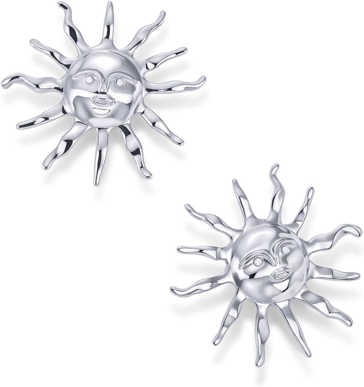 PAVOI 14K Gold Plated Statement Sun Earrings for Women – Chunky Sun Stud Earrings – Gold Big Celestial Studs with Pearls – Trendy Summer Jewelry(White Gold)