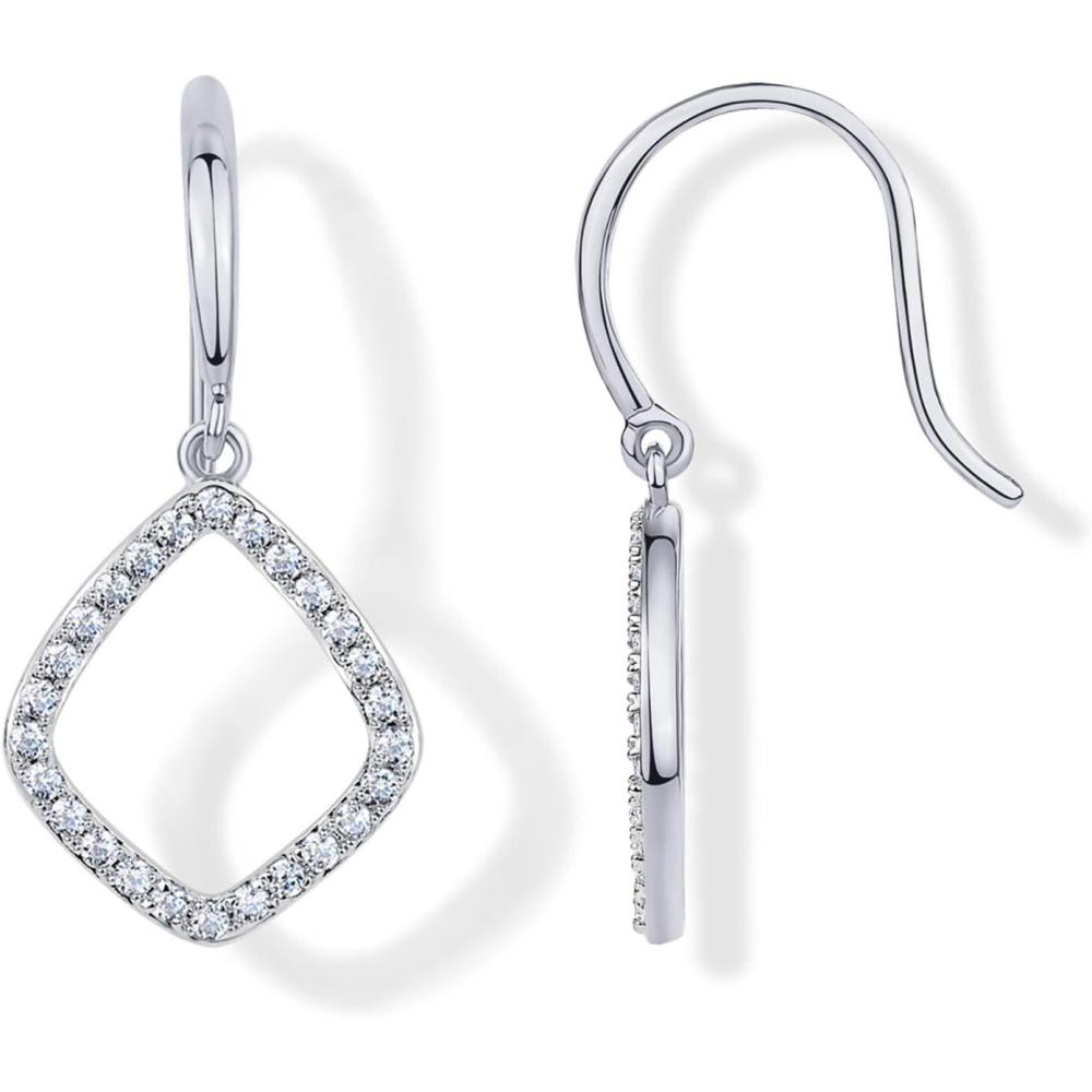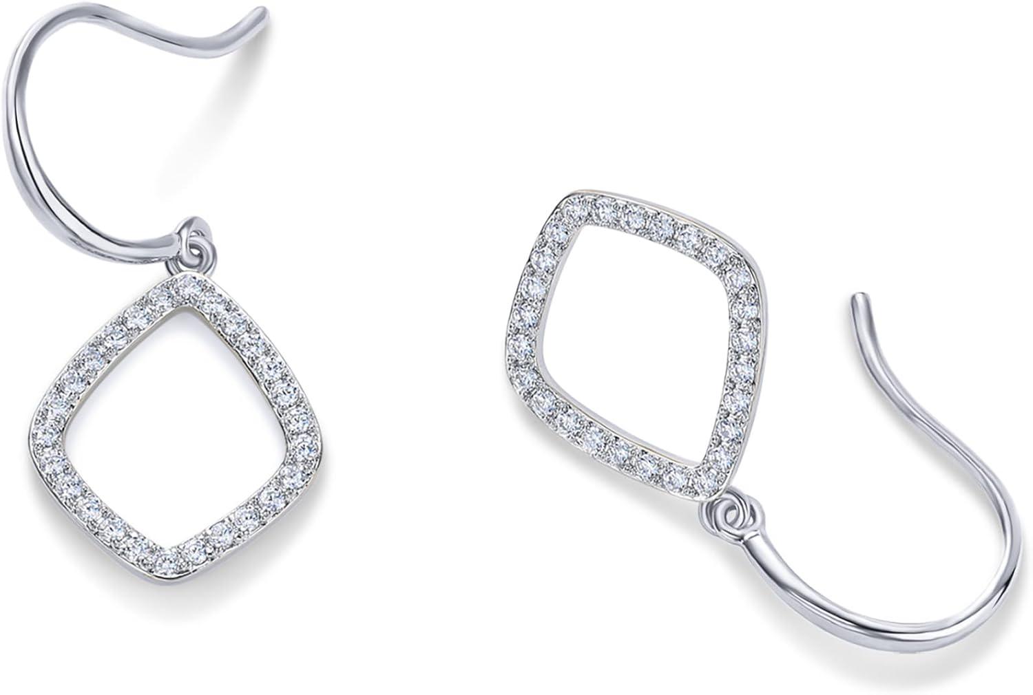 PAVOI 14K Gold Plated Teardrop Diamond Shaped Dangle Earrings for Women with Cubic Zirconia | Geometric Earring Pair(White Gold)