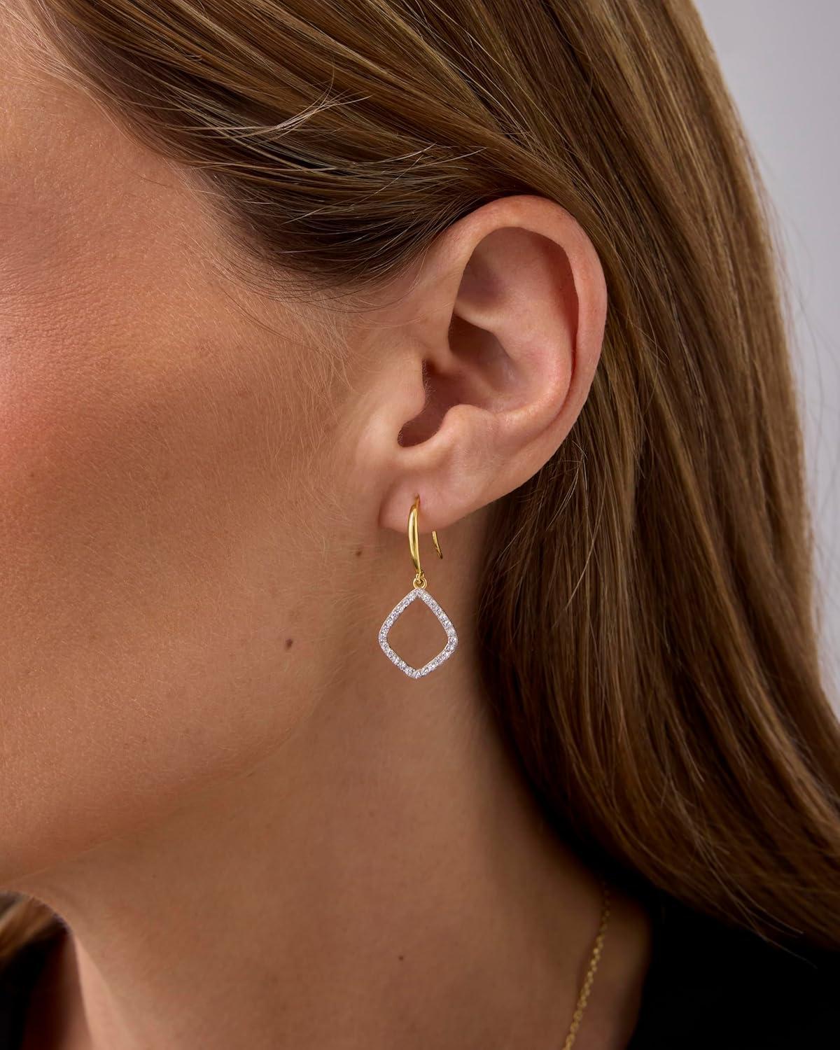 imagePAVOI 14K Gold Plated Teardrop Diamond Shaped Dangle Earrings for Women with Cubic Zirconia  Geometric Earring PairWhite Gold