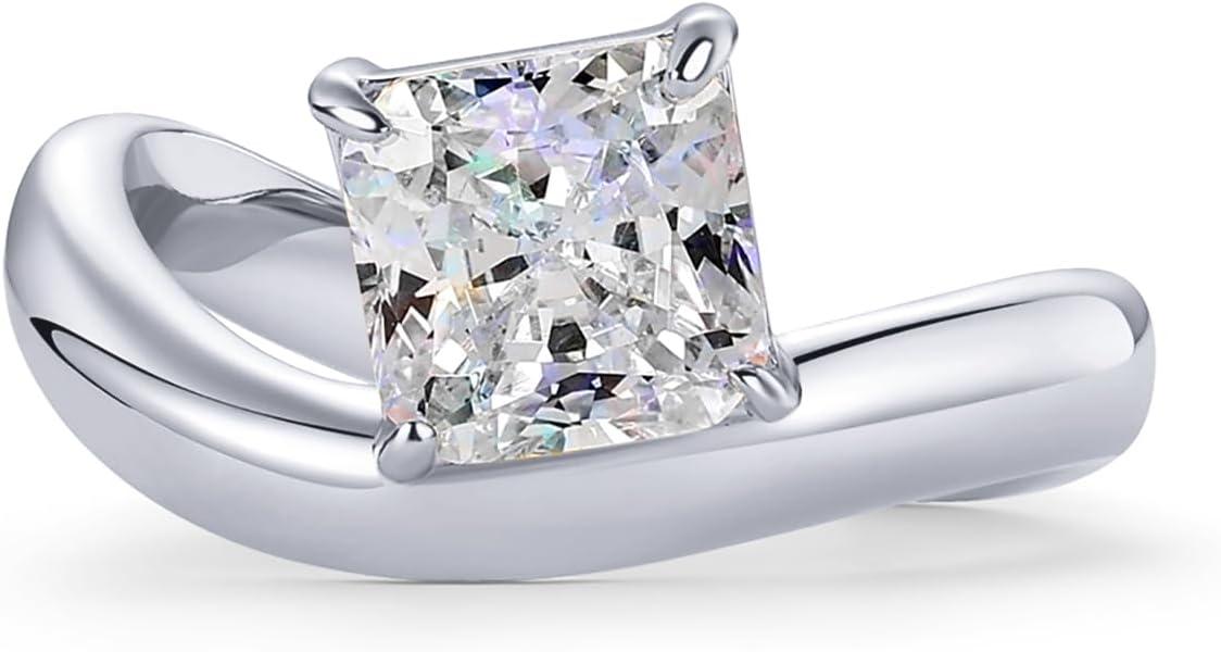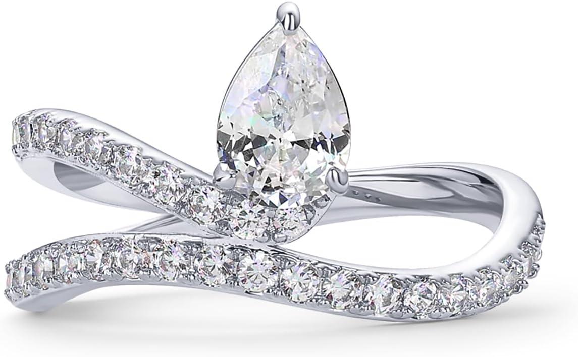 PAVOI 14K Gold Plated Wavy Engagement Ring for Women | Solitaire Cubic Zirconia Wedding Band & Promise Rings for Her | Trendy Fashion Jewelry(White Gold)