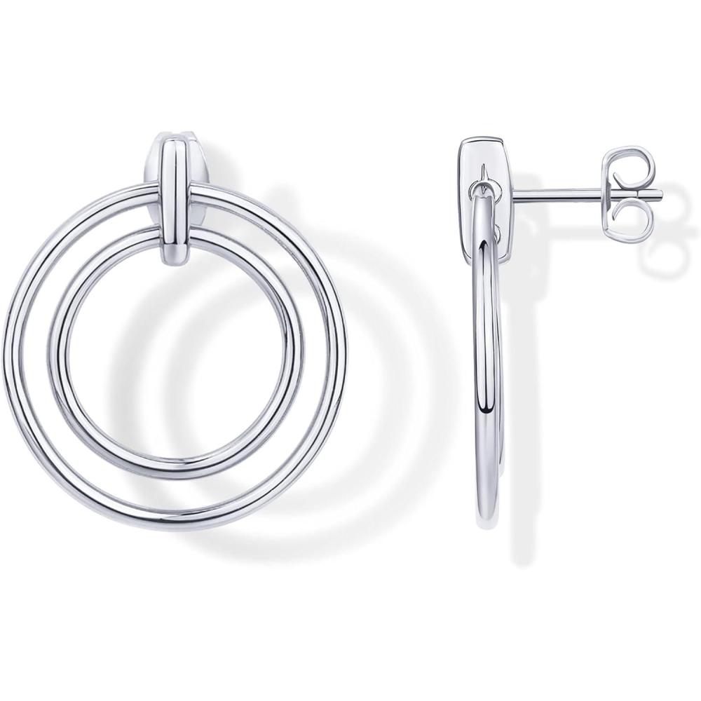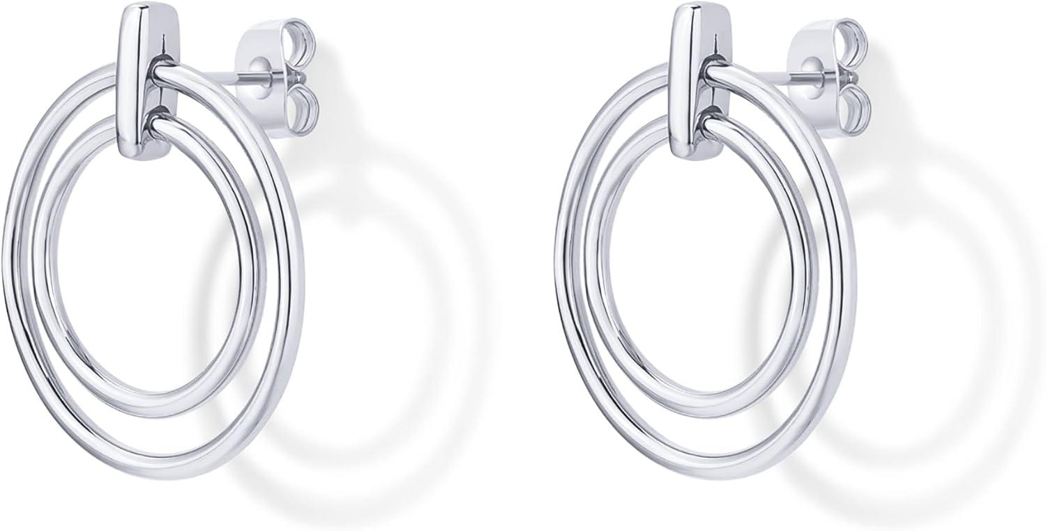 PAVOI 18K Gold Plated Statement Door Knockers Stud Earrings for Women | Interlock Ring Dangle Earrings(White Gold)