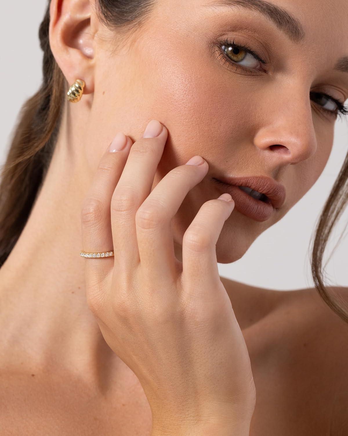 imagePAVOI 14K Gold Plated Solid 925 Sterling Silver CZ Simulated Diamond Stackable Ring Eternity Bands for Women2Pack Yellow Gold