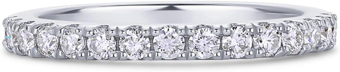 PAVOI 18K Gold Vermeil Plated 0.45CT Moissanite Wedding Bands for Women - Sterling Silver Eternity Rings for Women - Stackable Moissanite Eternity Band Anniversary Ring Jewelry Gifts(White Gold)