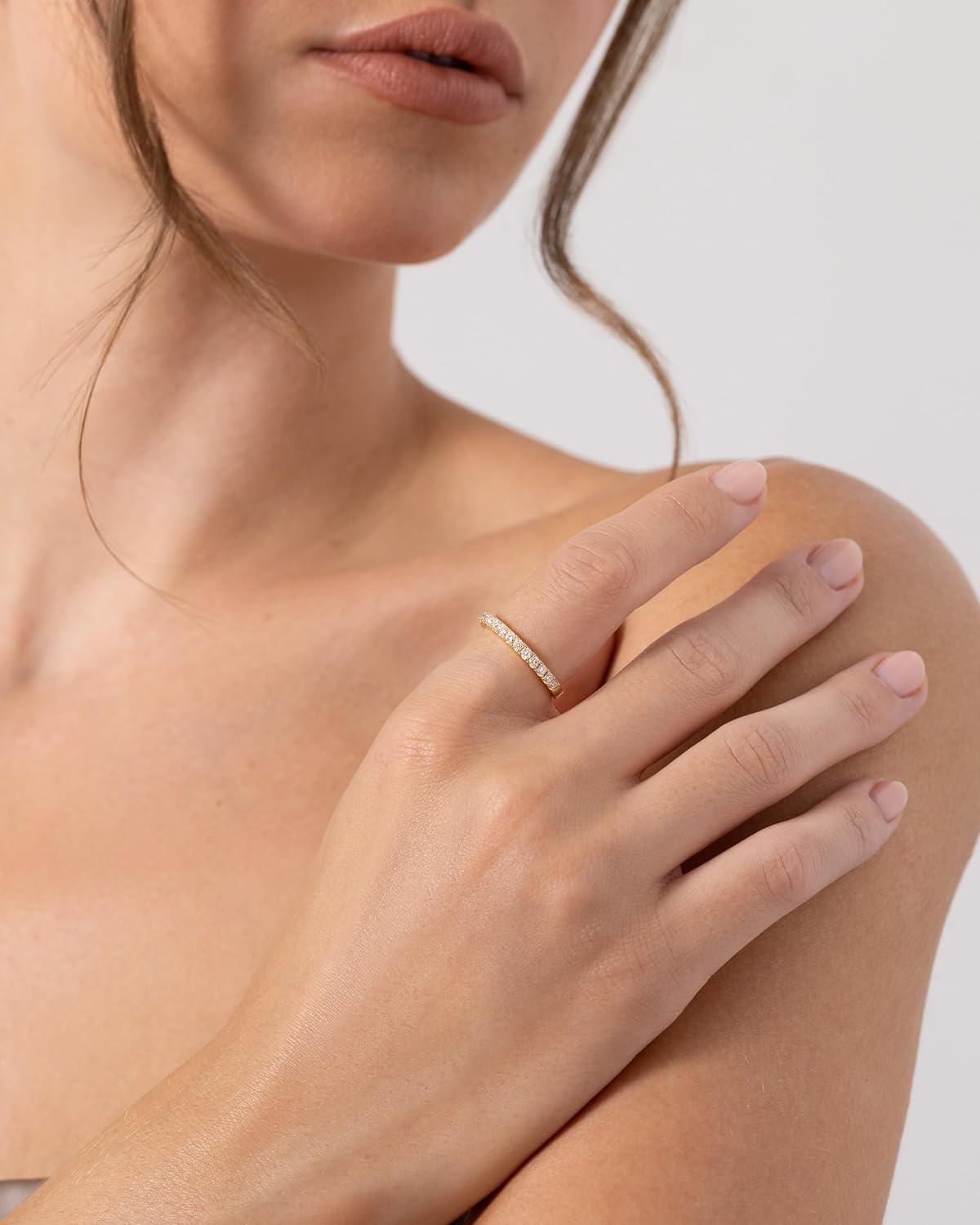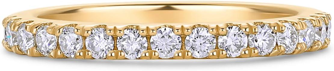 Celebrate timeless brilliance with the PAVOI 18K Gold Vermeil Plated Moissanite Wedding Band, a symbol of elegance designed to last a lifetime. Handcrafted from premium 925 sterling silver and plated in 18K gold vermeil, this moissanite band captures the perfect balance of luxury and everyday wear. Each shimmering moissanite stone is expertly cut to maximize sparkle, creating a radiant glow that rivals natural diamonds. Whether worn solo or stacked, this moissanite eternity ring delivers endless sophistication and fire from every angle. Designed for the modern woman, our moissanite wedding band combines durability with delicate beauty, ideal for stacking with engagement rings or pairing with other moissanite bands for women to create a custom look. Its slender, versatile design allows effortless styling as part of your moissanite stackable rings collection or as a standout moissanite anniversary band that celebrates every milestone. Each moissanite ring band reflects exceptional craftsmanship and a refined aesthetic. Whether you’re searching for moissanite eternity rings for women or meaningful moissanite anniversary rings for women, this piece offers unparalleled radiance and value. Perfect as a wedding band, a stacking piece, or a heartfelt gift, it’s an everlasting expression of love and elegance.
