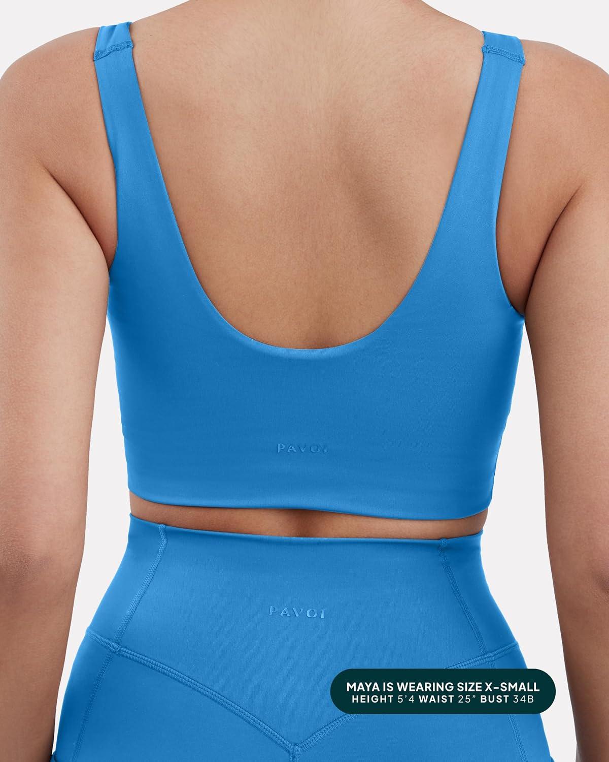 PAVOI ACTIVE Compression Sports Bras for Women | Medium Support Square Neck Longline Workout Bra Removable Pads | HiPerform(Royal Blue)