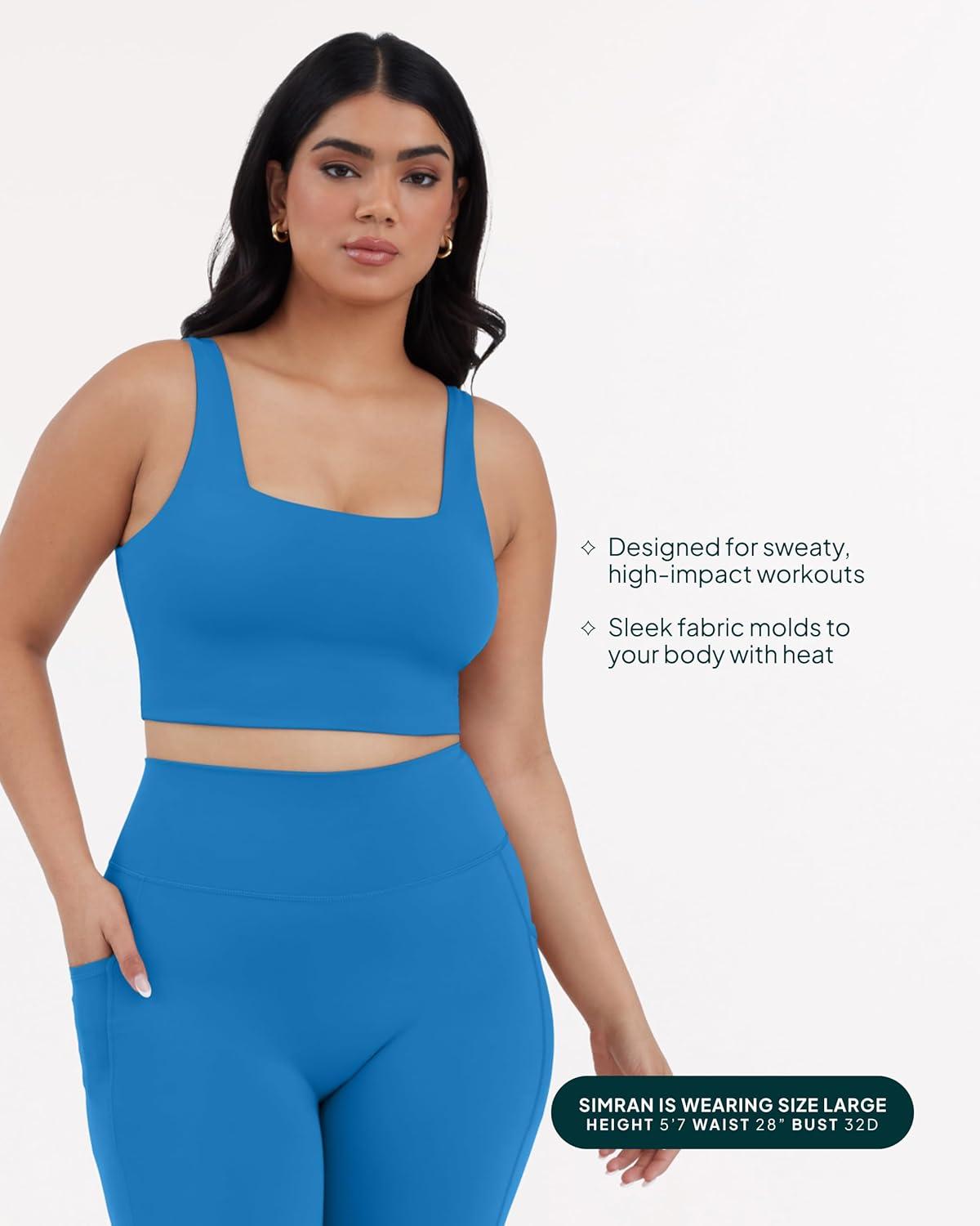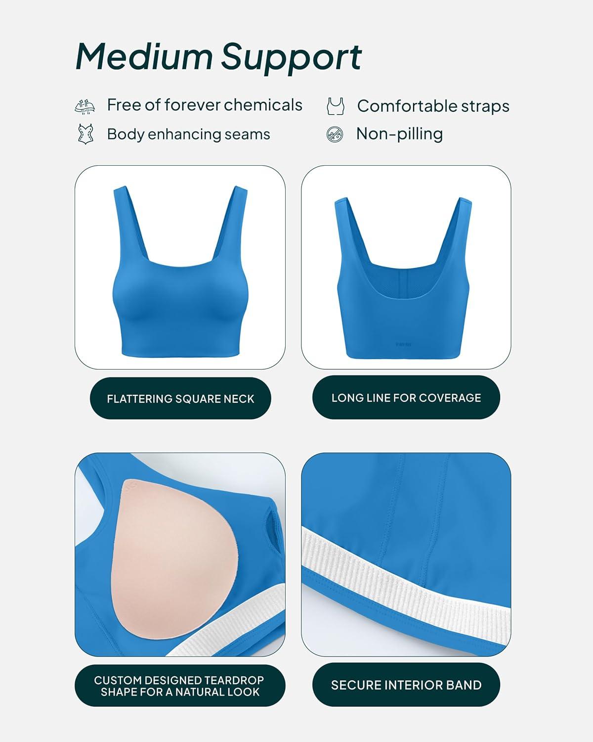 imagePAVOI ACTIVE Compression Sports Bras for Women  Medium Support Square Neck Longline Workout Bra Removable Pads  HiPerformRoyal Blue