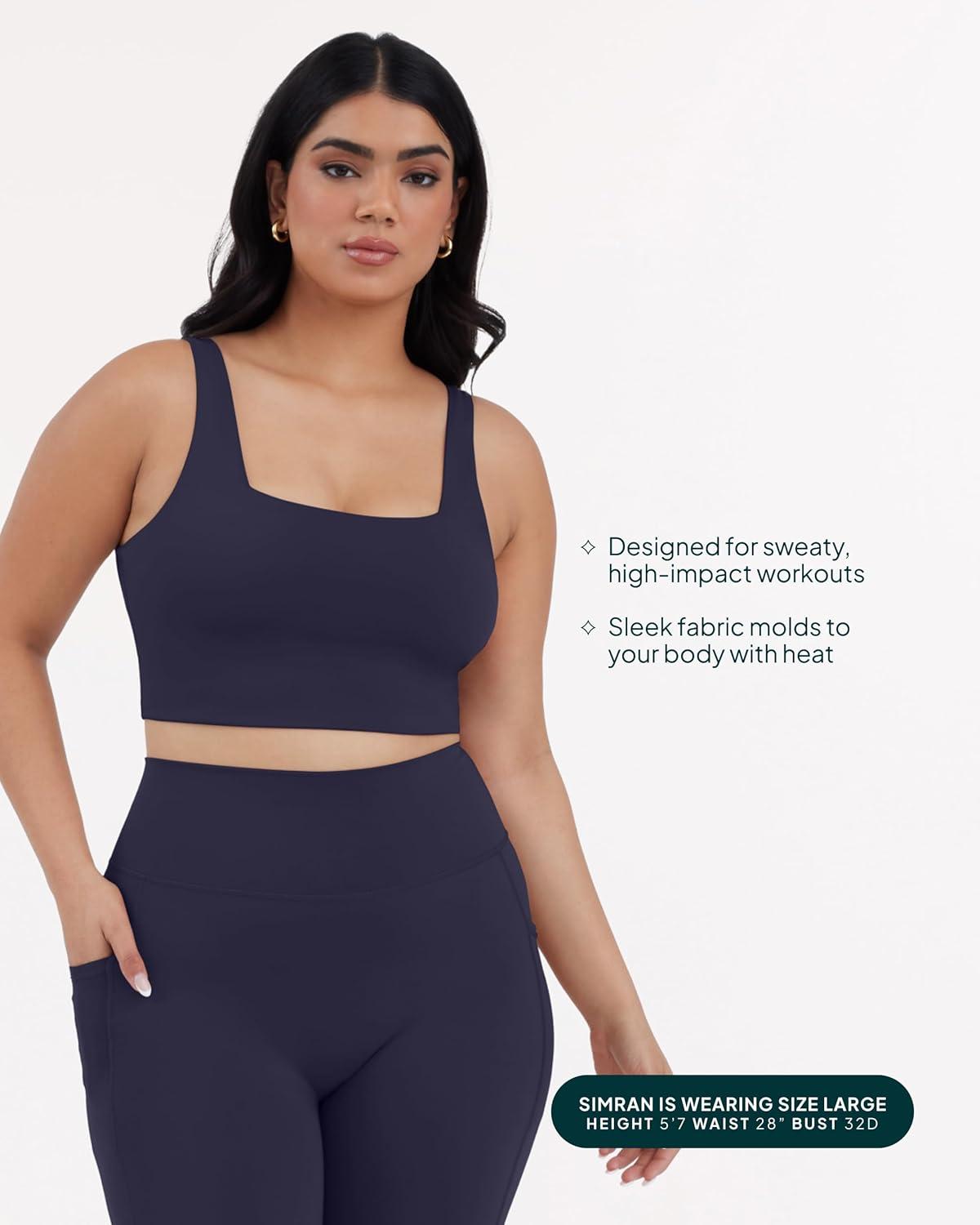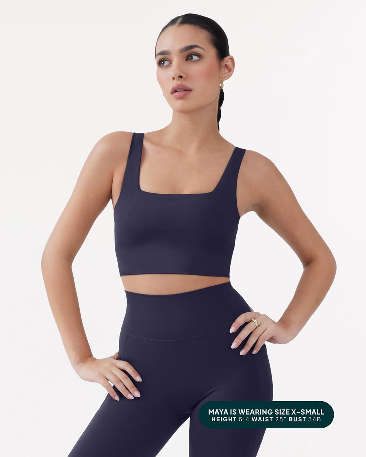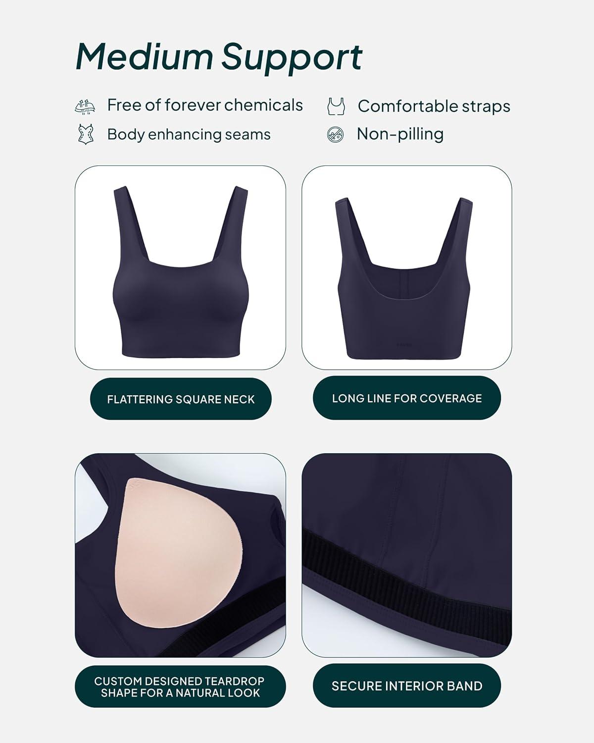 imagePAVOI ACTIVE Compression Sports Bras for Women  Medium Support Square Neck Longline Workout Bra Removable Pads  HiPerformTwilight
