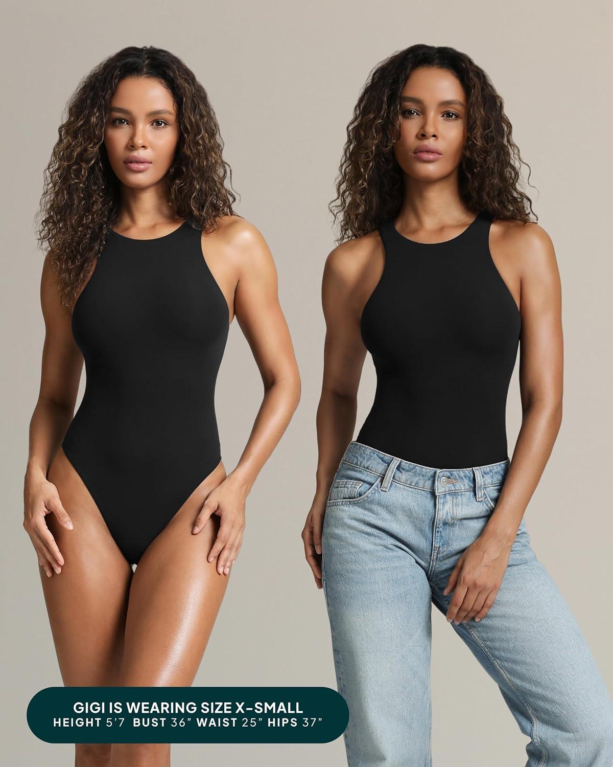 Elevate your wardrobe with our buttery soft high-neck bodysuit that seamlessly transitions from casual days to nights out. This sleek tank bodysuit features an exaggerated razor front and back that create a sculpted, feminine silhouette and a flawless base for any outfit. Enjoy all-day comfort with double-lined construction that eliminates sheerness and offers gentle sculpting for a smoothing, flattering fit. Clean-finished necklines and armholes keep the bodysuit in place—no digging, rolling, or adjusting needed. Fashion meets function with our racerback design and body-hugging fit that moves with you throughout the day. Whether running errands or heading out at night, this sleeveless bodysuit offers confidence-boosting support from morning to midnight. Premium details set it apart: bite stitching on side seams for durability, a high-leg cut that flatters and pairs perfectly with mid- and high-rise bottoms, and a nylon-coated snap closure for quick on/off. The cotton gusset, interior zigzag stitch, and 4-way stretch fabric deliver long-lasting comfort without bulging, squeezing, or sagging. Designed for versatility, this tank bodysuit can be worn with or without a bra and styled year-round. Its sleek lines make it ideal as a summer essential or a chic layering piece. From weekends to nights out, our bodysuit tank tops deliver effortless style, comfort, and versatility. This is the go-to one-piece for women who want elevated basics with a fashion-forward edge.