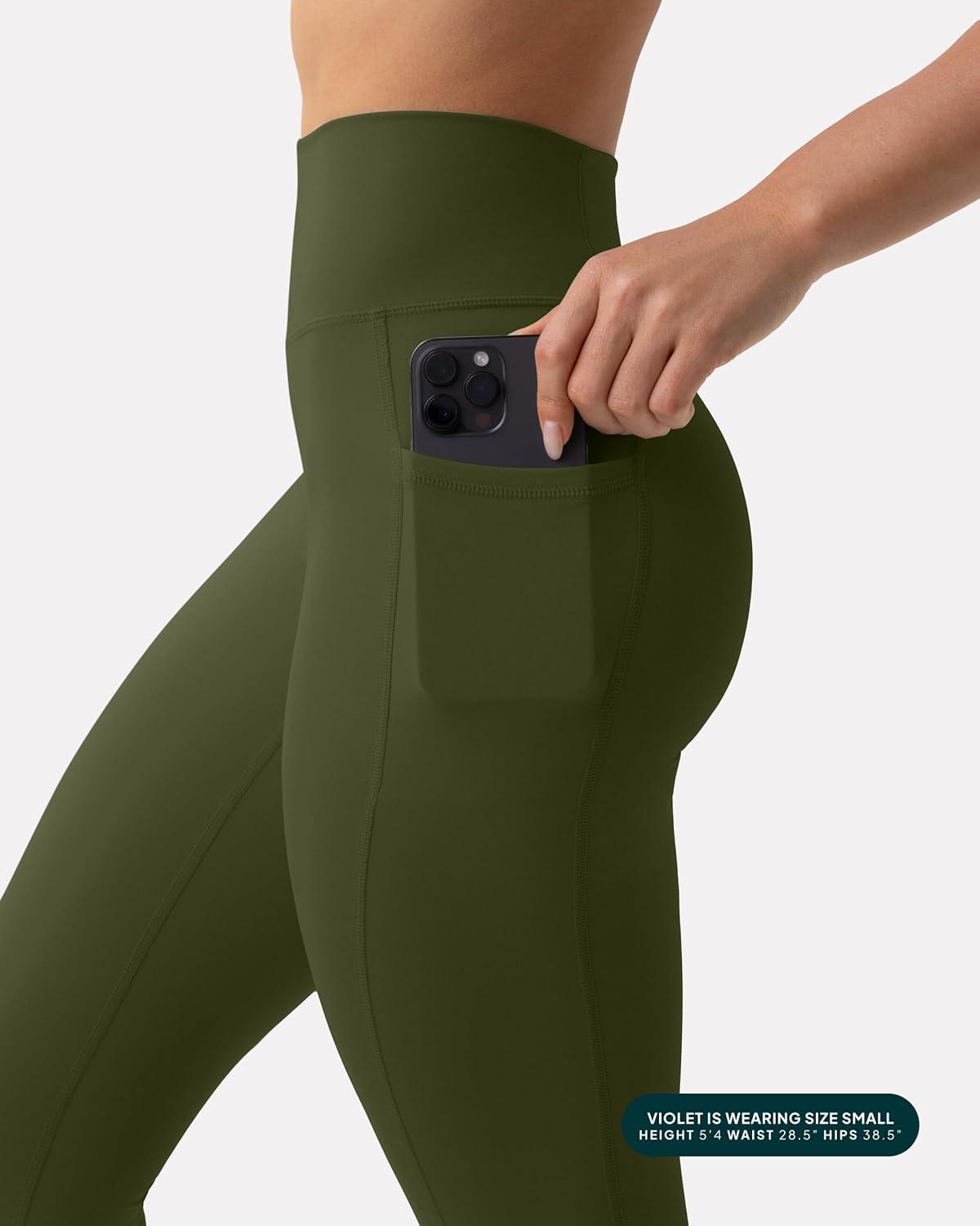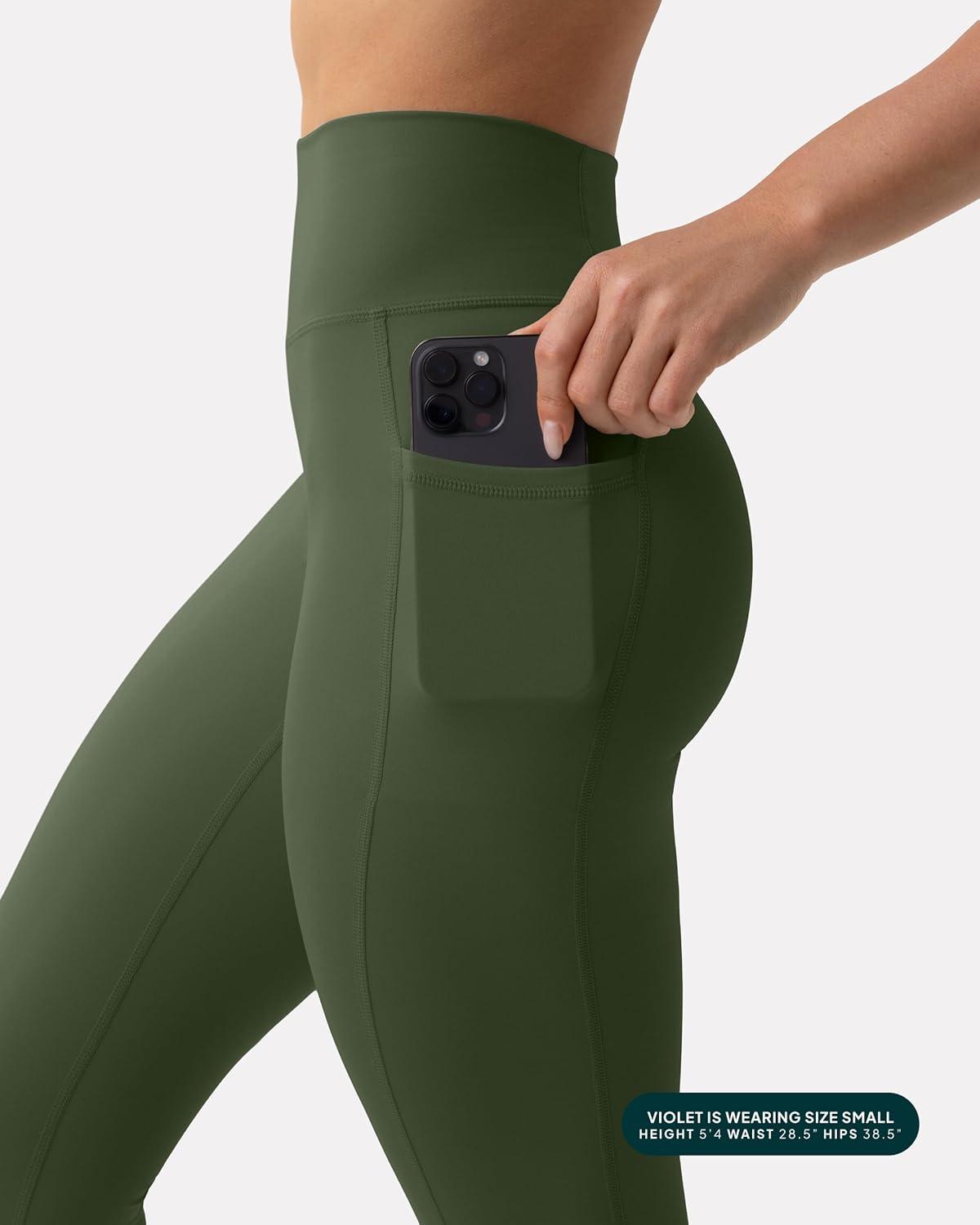 PAVOI ACTIVE Leggings with Pockets | Compressive High Waisted Butt Sculpting Women's Full Length Workout Pants | HiPerform(Army)