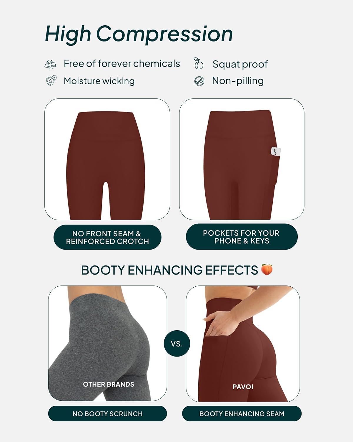 PAVOI ACTIVE Leggings with Pockets | Compressive High Waisted Butt Sculpting Women’s Full Length Workout Pants | HiPerform(Chocolate)