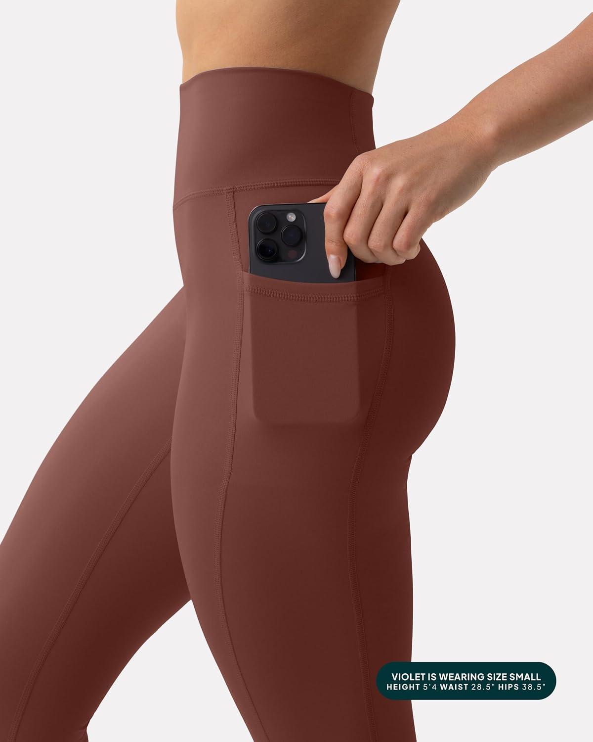 PAVOI ACTIVE Leggings with Pockets | Compressive High Waisted Butt Sculpting Women's Full Length Workout Pants | HiPerform(Chocolate)