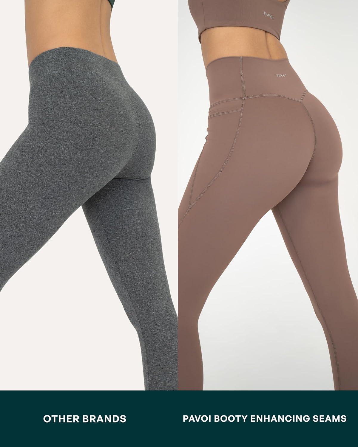 PAVOI ACTIVE Leggings with Pockets | Compressive High Waisted Butt Sculpting Women’s Full Length Workout Pants | HiPerform(Clay)