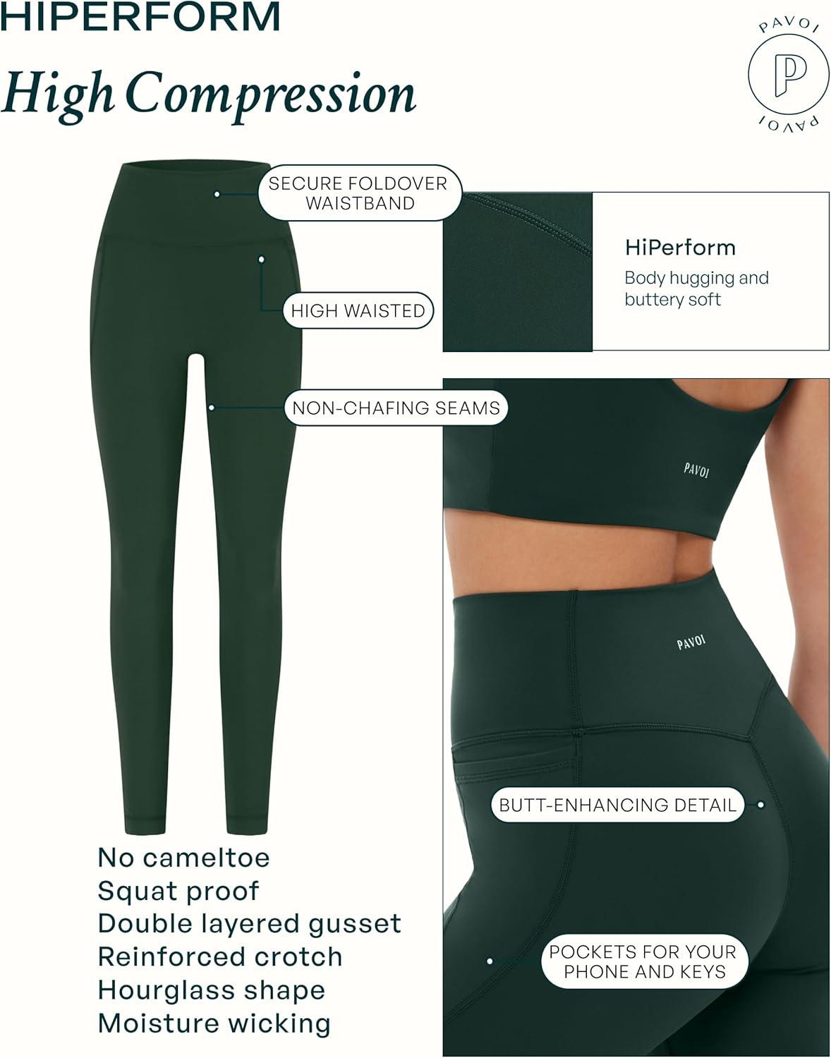 PAVOI ACTIVE Leggings with Pockets | Compressive High Waisted Butt Sculpting Women’s Full Length Workout Pants | HiPerform(Teak)