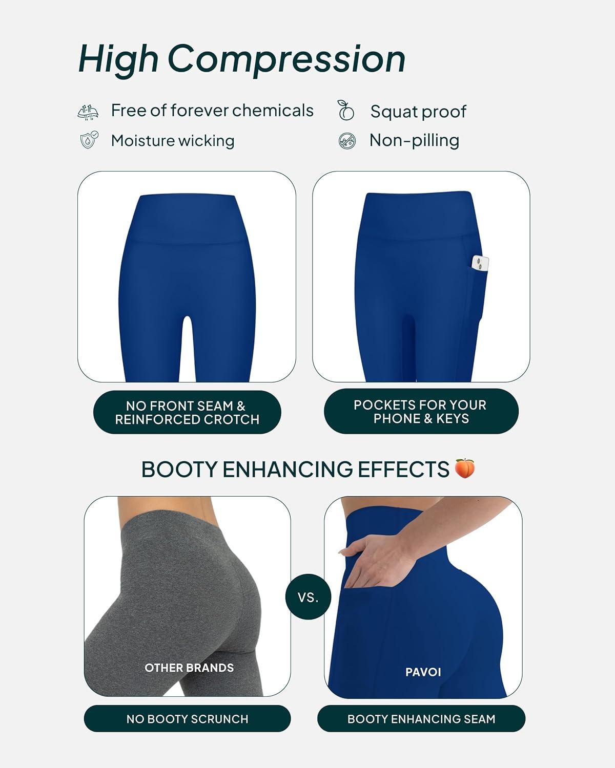 PAVOI ACTIVE Leggings with Pockets | Compressive High Waisted Butt Sculpting Women's Full Length Workout Pants | HiPerform(Indigo)