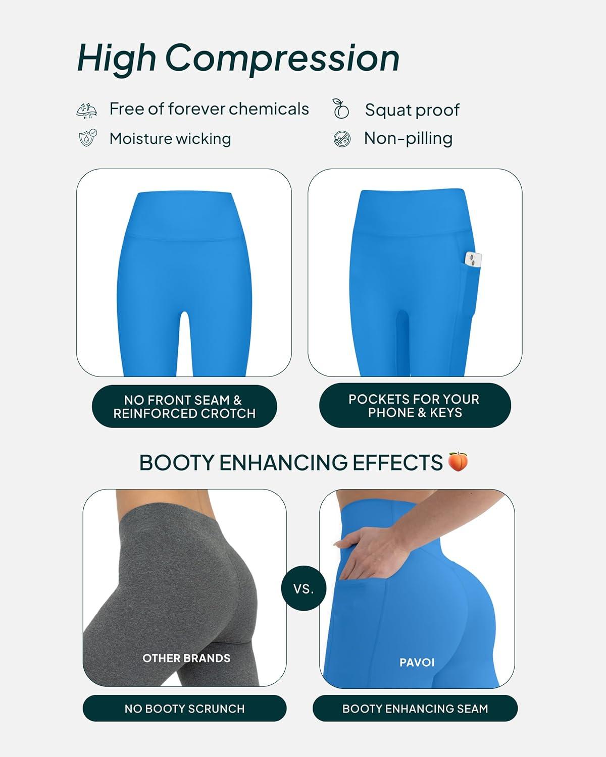 PAVOI ACTIVE Leggings with Pockets | Compressive High Waisted Butt Sculpting Women’s Full Length Workout Pants | HiPerform(Sienna)