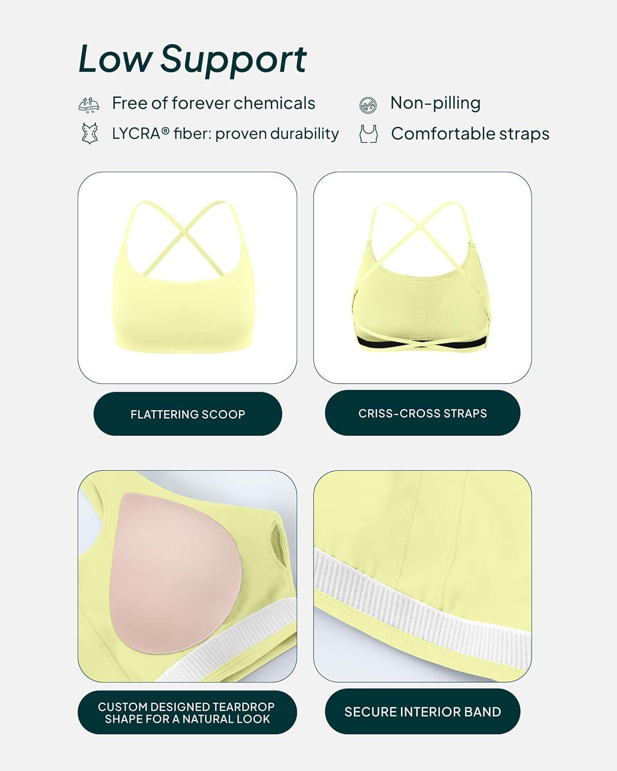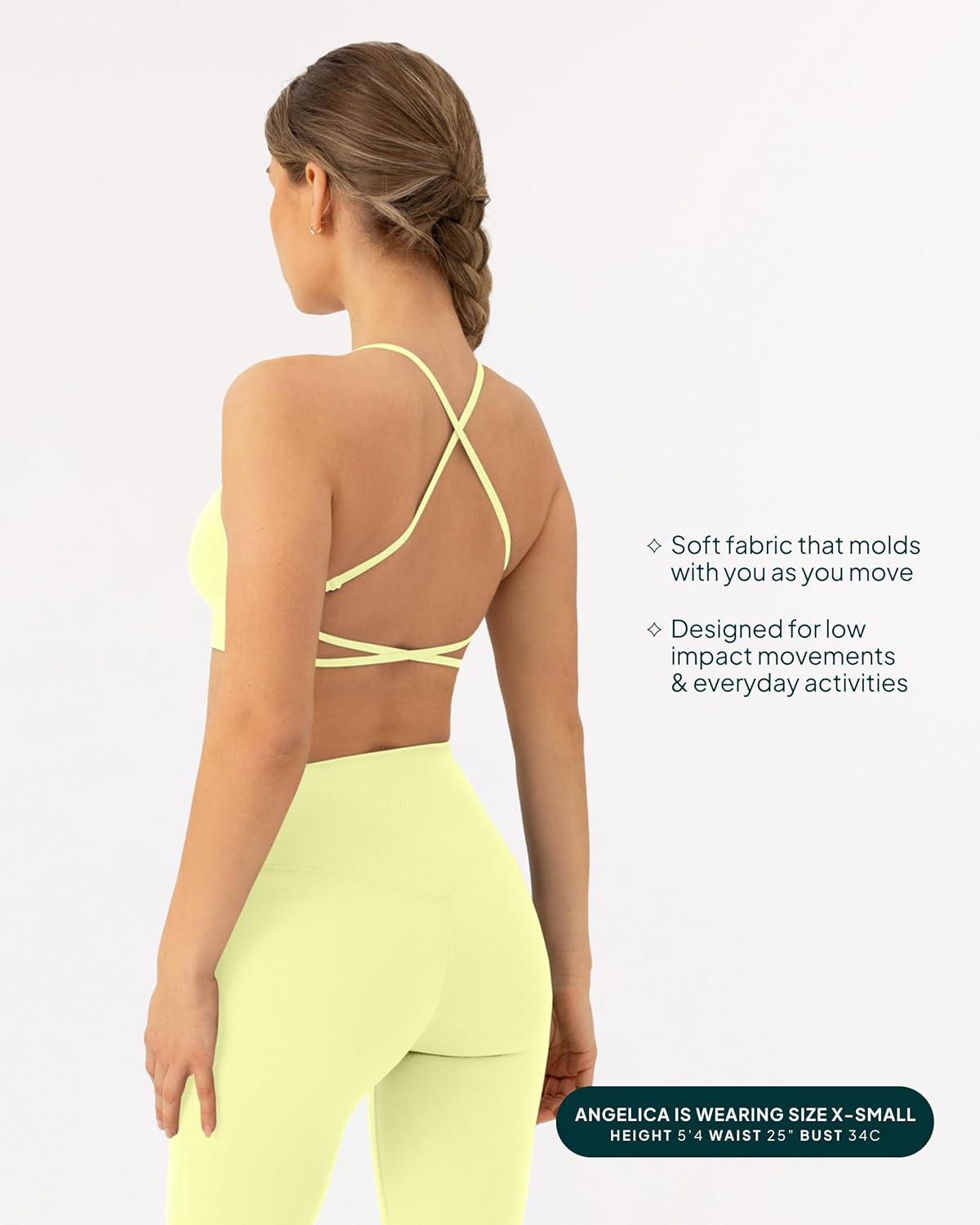 PAVOI ACTIVE Open Back Strappy Yoga Workout Bras for Women – Low Support Criss-Cross Sports Gym Bra Removable Pads – FlexFlow(Lemonade)