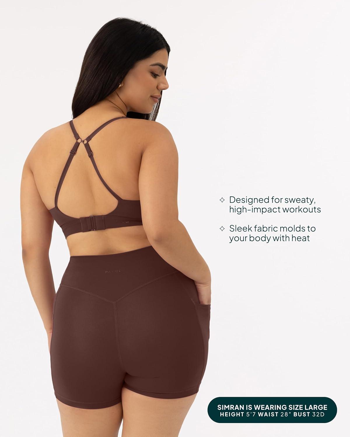 PAVOI ACTIVE Racerback Adjustable Sports Bra for Women - High Support Convertible Straps High Impact Workout Bras - HiPerform(Cocoa)