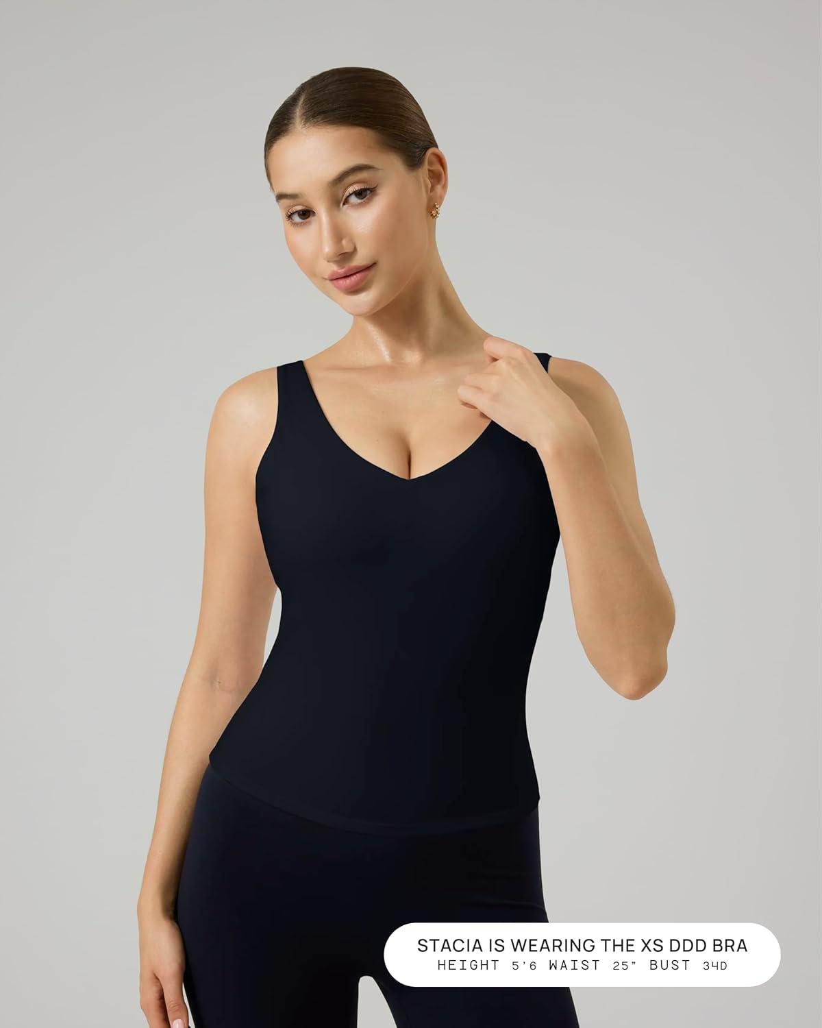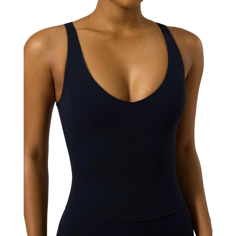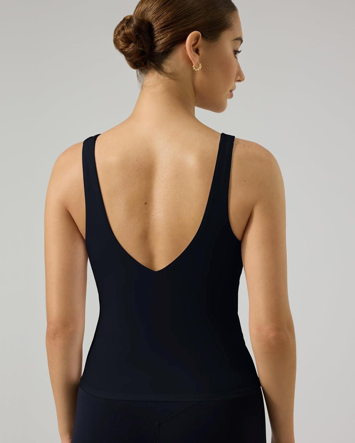 Designed to move with you, this v neck tank top delivers sculpting comfort, clean style, and reliable support for everyday workouts and all-day wear. This ultra-soft, stretch-forward tank is the go-to choice for women searching for a V neck tank tops for women with built in bra with elevated performance and confidence. The flattering low-cut V neckline and V back create a sleek silhouette, while the integrated shelf bra provides medium support without bulk. Thoughtfully engineered as a padded workout tank, it offers removable pads and a secure fit that stays comfortable from studio sessions to casual layering. Built as a V neck tank top with built in bra, this style blends softness, stretch, and shape retention for a premium experience.