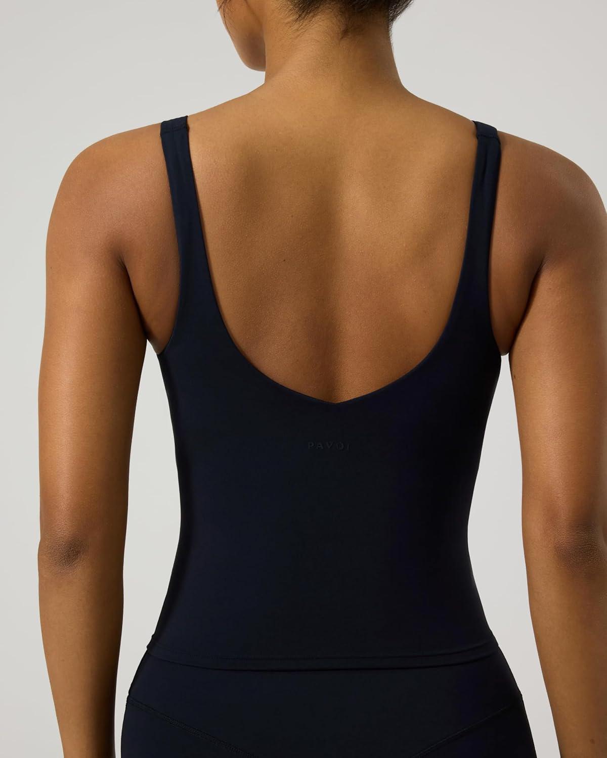 image:imagePAVOI ACTIVE Sports V Neck Tank Top for Women  Low V Front amp Back Mid Support Workout Tight Tank with Shelf Bra  FlexFlowBlack